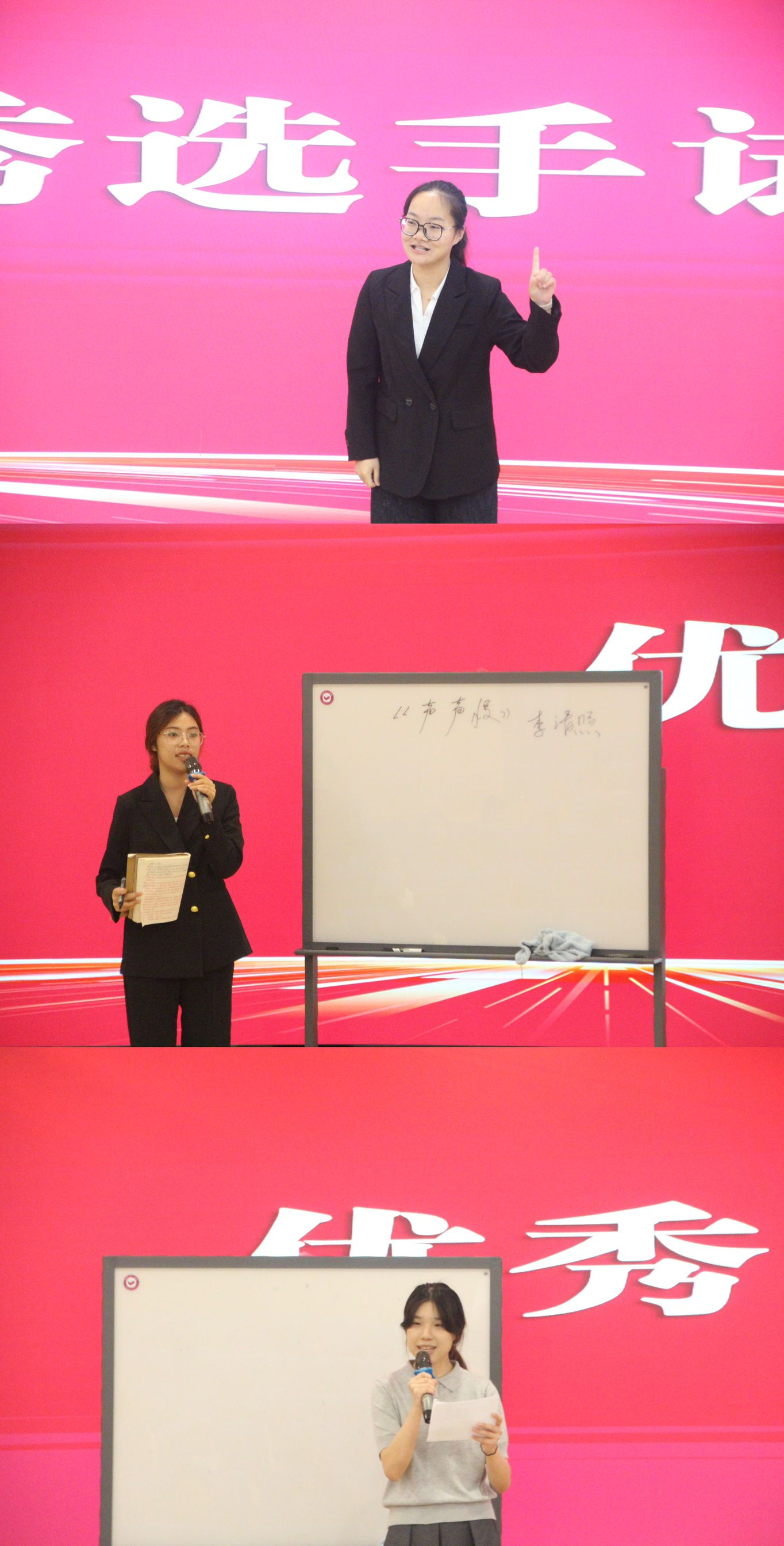 颁奖结束后,徐芷涵、鲍嘉柠、荣雨瑄三位优秀选手代表依次上台进行试讲展示。周天豪老师分别对三位选手的表现进行了专业点评,既肯定了他们的亮点,如教学环节设计合理、教态自然大方等,也提出了针对性的改进建议,让在场选手受益匪浅。在教资面试考前技巧讲解环节,周天豪老师结合多年面试评委经验,通过案例分析、情景模拟等形式,深入剖析面试评分要点。活动现场互动频频,同学们纷纷表示:“老师的讲解既有理论高度,又贴近实际,为备考提供了清晰的行动指南。”