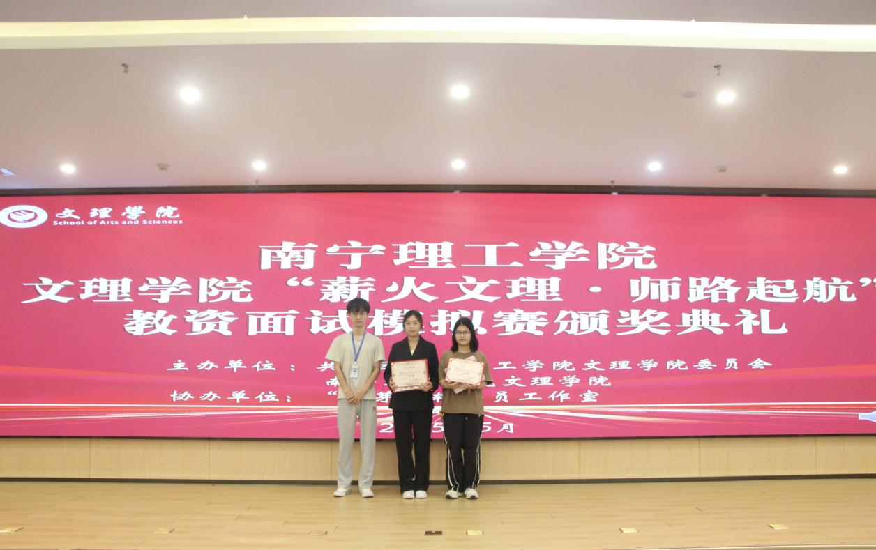 为未来教育工作者搭建实践平台,提升教资面试技能,传承教育初心,5月15日下午,“薪火文理·师路启航”教资面试模拟赛颁奖典礼暨教资面试考前技巧讲解活动在南宁东盟校区图书馆119报告厅顺利举办。