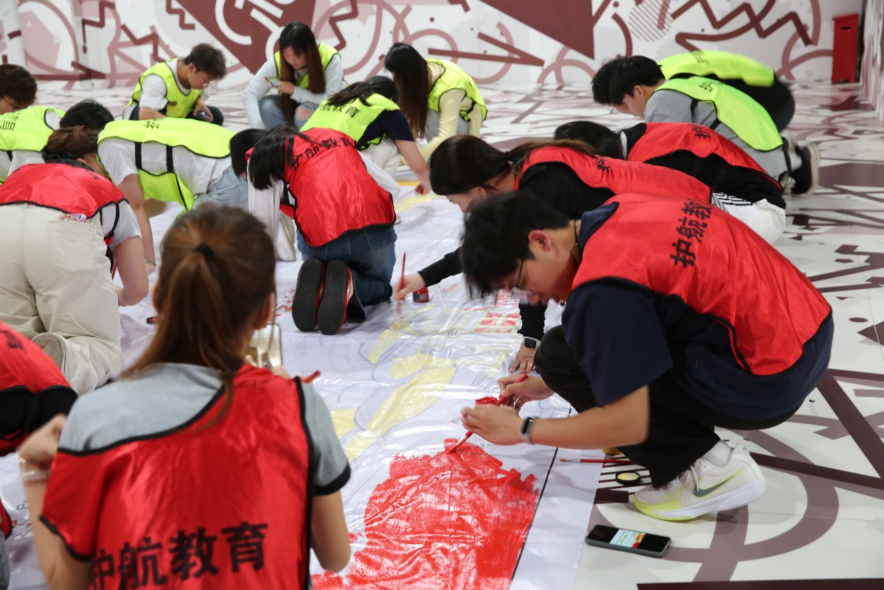 在基地科技展厅,同学们借助VR技术沉浸式体验了“中共一大”会议场景及党的发展历程。智能设备将历史场景转换为立体影像——从南湖红船到延安窑洞、从《新青年》到《共产党宣言》,学员们以第一视角感受“中共一大”召开时的严峻形势和建党伟业的重重困难,在科技与历史的交织中叩问初心、深化认知。同时,活动中学员们还参与了“重走建党路”和“共绘蓝图”项目。在“重走建党路”环节,学员们需要限时将建党历程中重大历史事件进行排序,在挑战中体悟团队的力量强化对党史脉络的系统理解。随后“共绘蓝图”集体创作中,学员们用画笔和颜料将中共一大红船乘风破浪描绘得栩栩如生,生动展现出“乘百年薪火,启未来新篇”的壮美画卷。