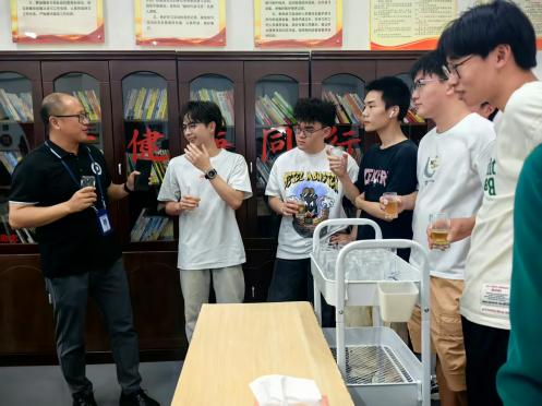 在广西珠江啤酒有限公司在原料筛选区,学生们目睹工作人员仔细甄别麦芽和啤酒花,理解了原材料质量对于啤酒品质的“基石”作用。在糖化、发酵车间,设备有序运转,温度和时间精准把控。学生们了解到,温差和时间都可能影响啤酒的口感与风味。在这里,他们感受到了生产过程中的每一个细节都关乎着成本与品质的平衡。