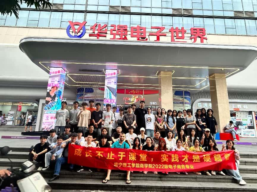 行程第二站抵达闻名全球的华强北电子市场。这里作为中国电子产业的“晴雨表”和供应链源头,让学生们得以零距离接触电子元器件、智能硬件的最新产品与动态、调研产品供应、价格体系、采购模式,并与商户交流,学习选品技巧、供应链管理及市场快速反应机制,深刻理解了电商背后强大的供应链支撑体系对于业务成功的关键作用。