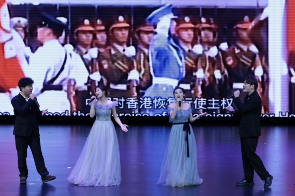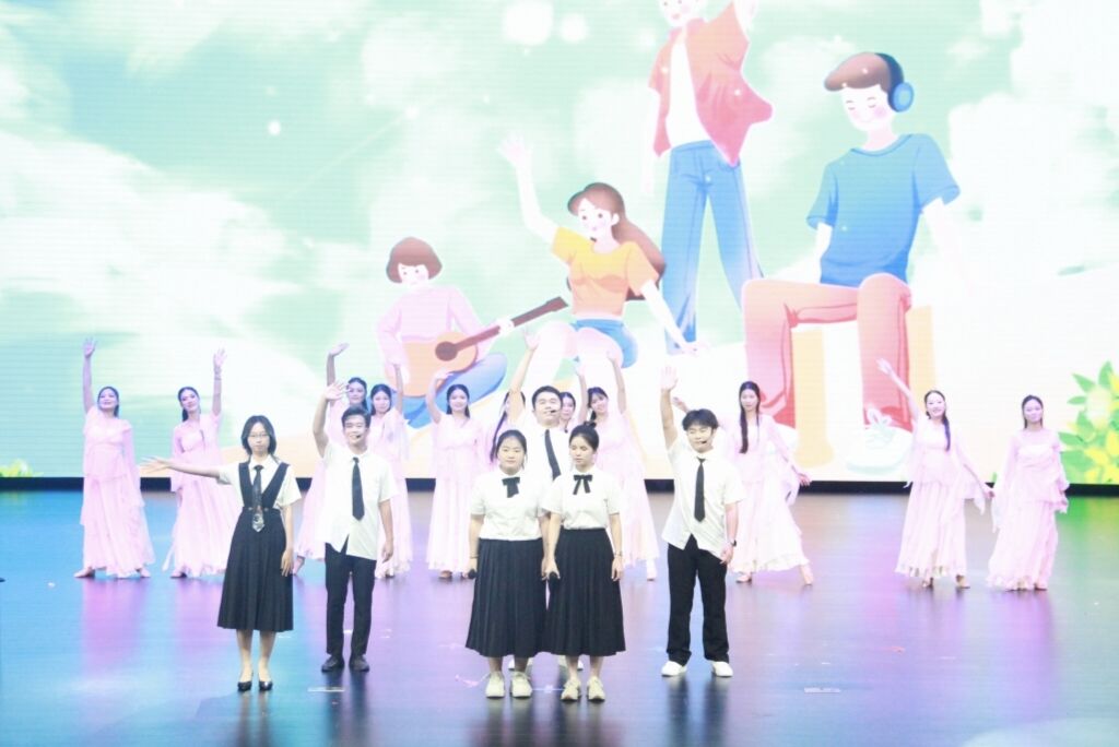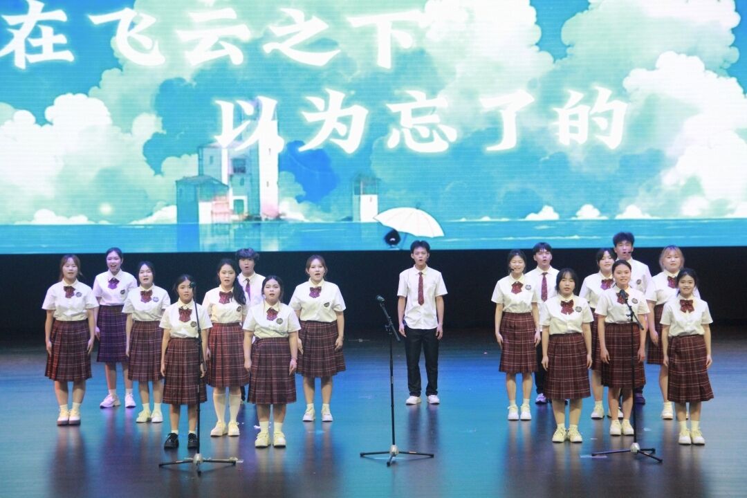 进入“忆·时光絮语”篇章 ,文理学院艺术团歌唱队余思雨、农飞扬带来《敕勒歌》,用悠扬的吟诵传递诗意;文理学院艺术团主持队等的配音节目《未剪辑的青春片段》,靠声音重现校园里的欢笑与成长;文理学院学前教育2301班同学《映山红》,让红色旋律讲述青春故事;文理学院艺术团歌唱队、乐器队《紫荆花盛开》,花瓣纷飞中,沉淀着四年同窗的深厚情谊。