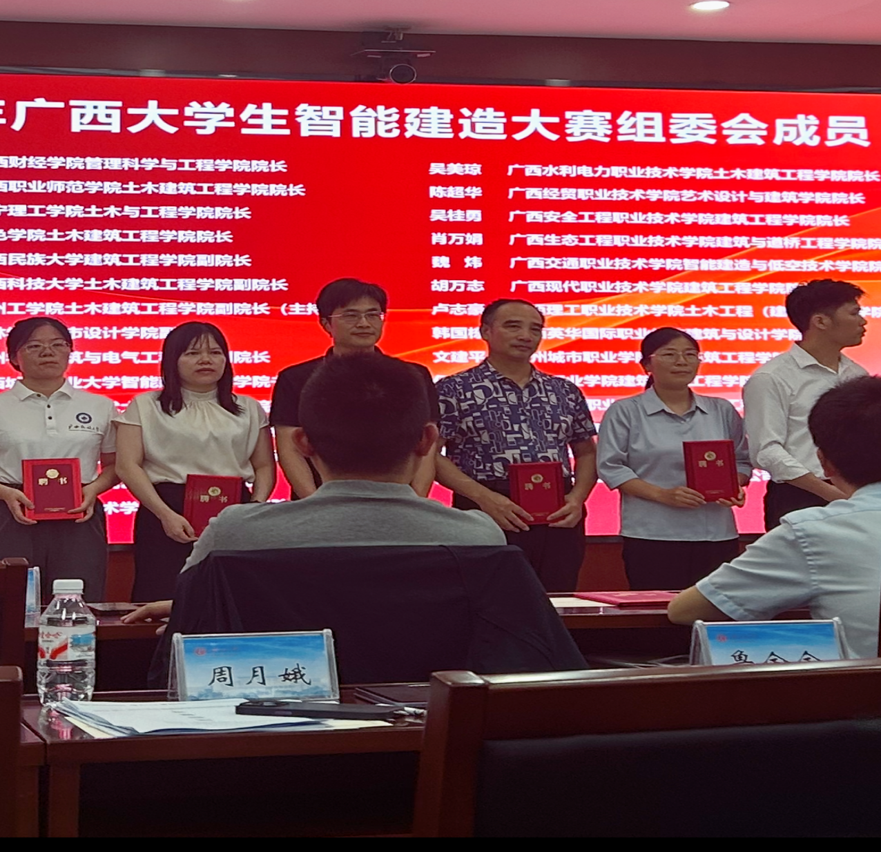 会议刚开始主办方宣布了广西大学生智能建造大赛组委会的成立,并为鲁院长颁发了组委会聘书。紧接着宏业软件公司负责人对首次在广西大学举办的智能建造应用技能大赛的赛题进行了解读。最后各本科高职院校分享了对智能建造专业人才培养的经验。