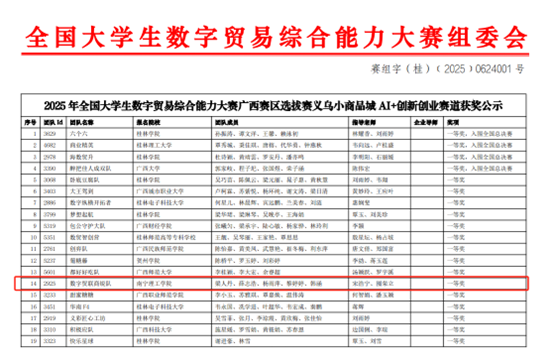 2025年6月15日,第四届全国大学生数字贸易综合技能大赛在广西大学举行。本次大赛由浙江大学中国数字贸易研究院主办,全国大学生数字贸易综合技能大赛组委会承办,聚焦“数字贸易”背景下的能力培养,吸引了各院校经贸类专业学生参与,旨在激发和培养大学生在数字贸易领域的实践能力和创新精神。