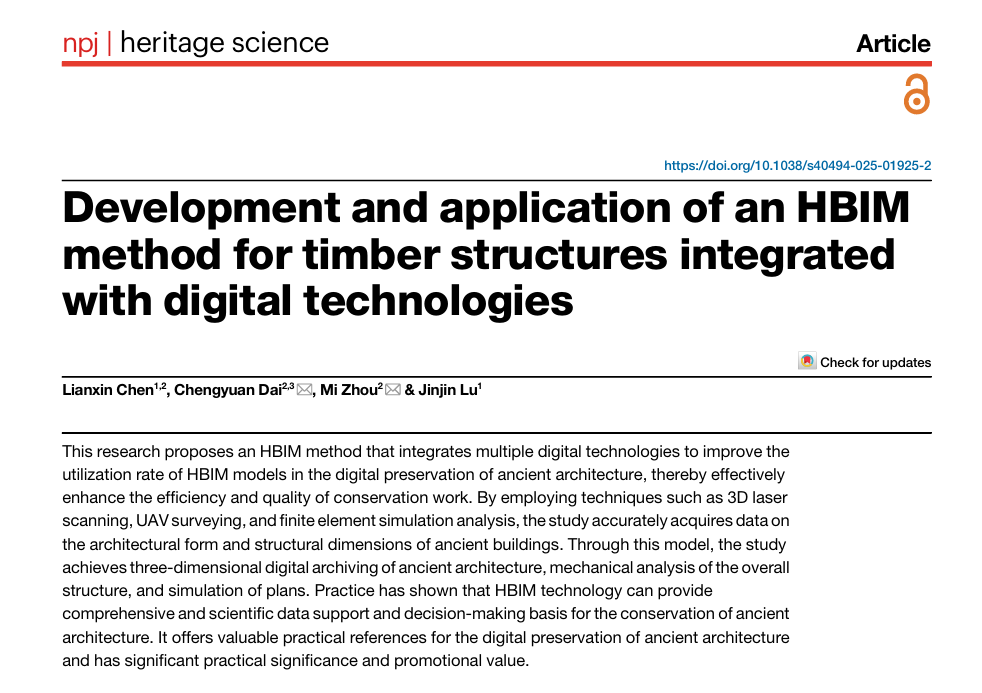 文章引用格式:Chen, L., Dai, C., Zhou, M. et al. Development and application of an HBIM method for timber structures integrated with digital technologies. npj Herit. Sci. 13, 381 (2025). https://doi.org/10.1038/s40494-025-01925-2