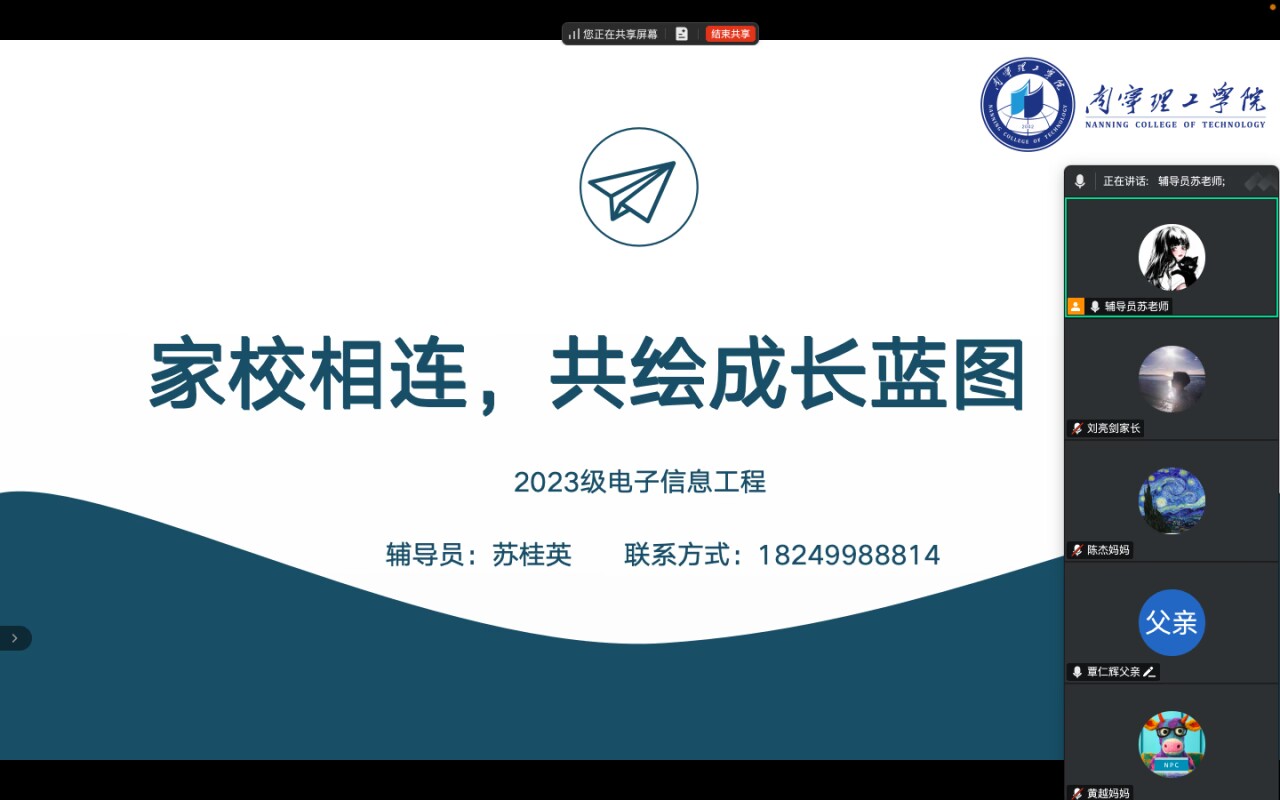 “云·家访”期间,辅导员们灵活运用微信群、腾讯会议、钉钉等平台工具与家长展开互动。在微信群中,辅导员定期发送学生在校的课程成绩、竞赛获奖情况以及社团活动风采,方便家长随时了解动态,并及时解答家长关于日常事务的咨询。在各班级线上家长会上,辅导员依托腾讯会议视频功能,聚焦学生专业成长与未来发展展开深度交流。会上,辅导员详细分析学生在专业课程学习中的薄弱环节,针对家长普遍关心的焦点问题,从国家资助申请流程、评奖评优标准细则、实习就业资源对接、考研备考时间规划、国际化教育项目申报等方面逐一解答,助力家长清晰把握学生升学就业的多元路径。