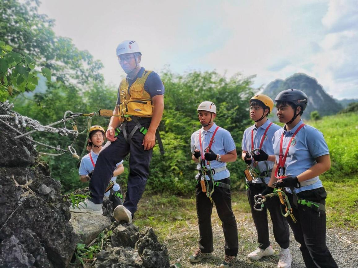 图为专业攀岩教练为队员们讲解安全装备使用。韦河杉供图