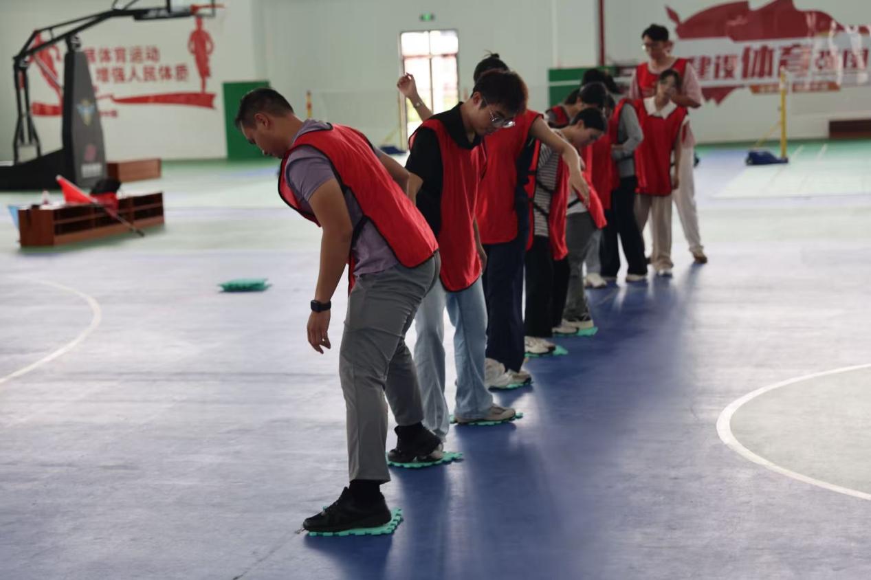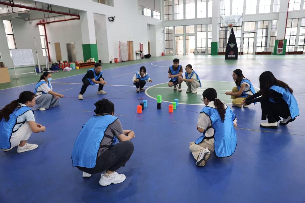 素质拓展活动在轻松愉悦的破冰游戏中拉开序幕。在教练员的引导下,全体学员迅速分为三支队伍,各队成员集思广益推选队长、构思队名、创作口号、设计队旗与造型,一系列创意展示环节充分展现了辅导员们的活力与智慧。随后,团队步步高、达芬奇密码等项目轮番上演,拉绳筑塔考验精准协作,翻牌排序挑战策略统筹;挑战 NO.1 的极速配合、驿站传书的默契传递、勇往直前的集体冲锋,将活动气氛一次次推向高潮。训练场上传来阵阵欢呼与掌声,辅导员们在欢声笑语中深刻体会到沟通协调的艺术、组织分工的重要,更真切感悟到团结协作的力量与共赢共进的真谛。