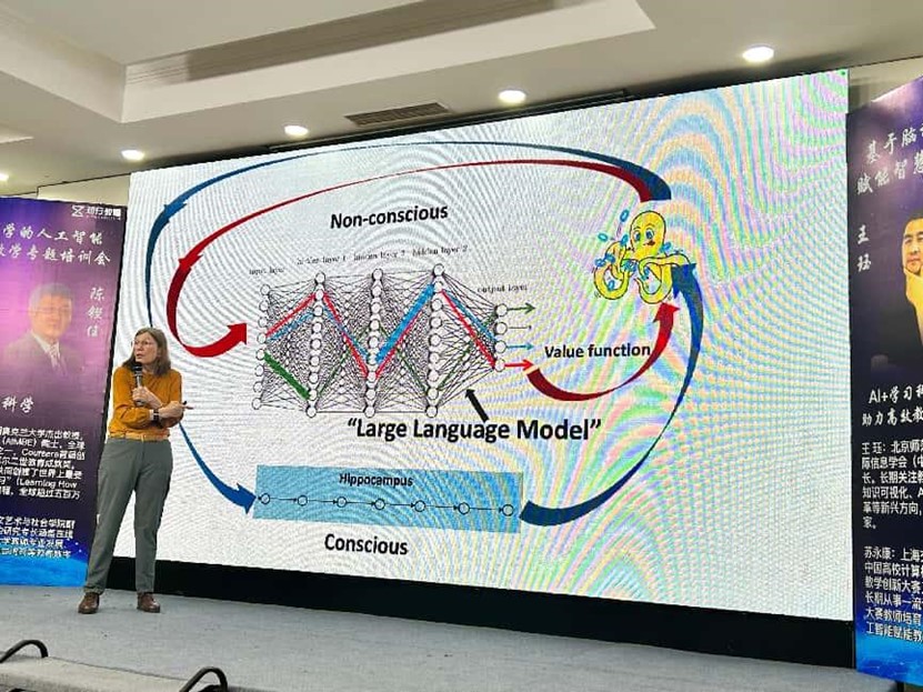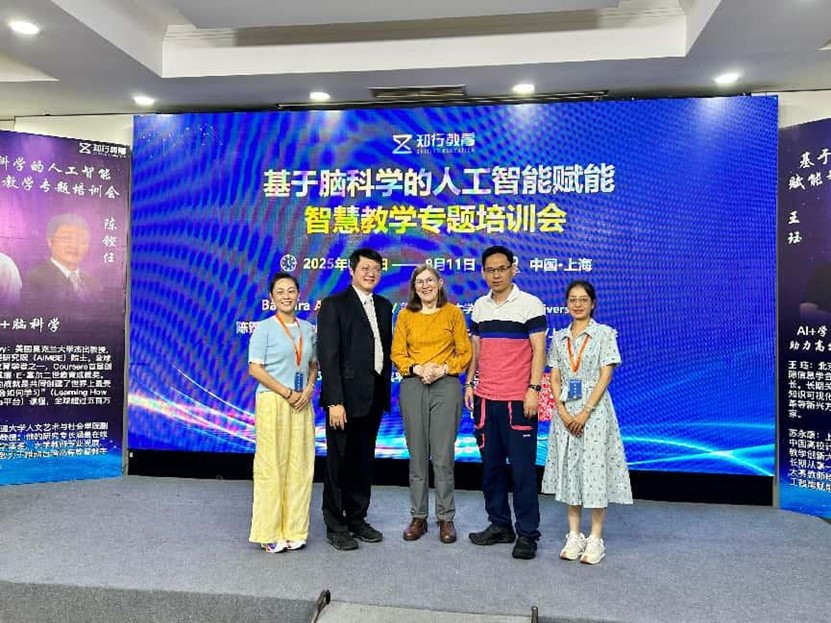 为深入推进人工智能与教育教学深度融合,提升教师智慧教学能力,BV伟德电子商务专业唐莉琼教师于8月8日至11日参加了“基于脑科学的人工智能智慧教学专题培训会”。会议聚焦脑科学与人工智能在教育领域的创新应用,特别邀请美国奥克兰大学杰出教授Barbara与上海交通大学苏永康教授分别就“AI时代的脑力激荡”与“AI赋能智慧课程内容及设计”进行专题授课,通过专家讲座、案例分析、实践操作等多种形式,为教师们带来前沿教学理念与方法。