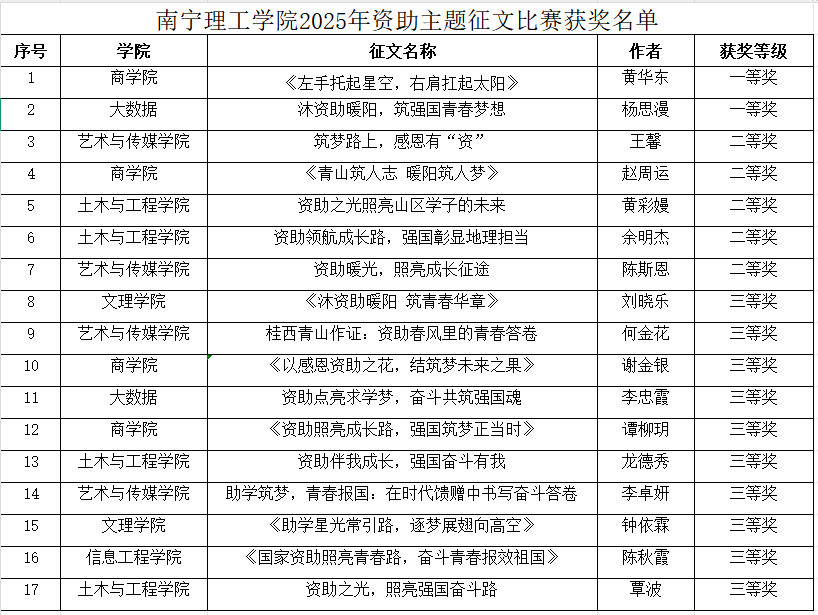 此次征文比赛不仅有效拓展了资助政策宣传的深度与广度,更进一步增强了学生的感恩意识和社会责任感。同学们纷纷表示,将常怀感恩之心、勇担时代使命,把暂时的困难转化为前进的动力,以实干实绩回报国家、回馈社会,让青春在为实现教育强国梦、全面建设社会主义现代化国家的火热实践中绽放绚丽光彩。