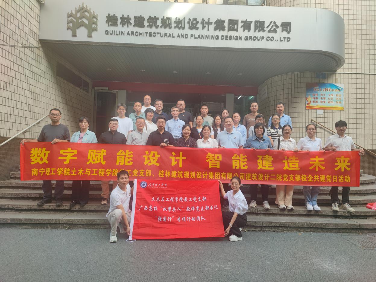 2025年9月26日下午,土木与工程学院教工党支部前往桂林建筑规划设计集团有限公司与建筑设计二院党支部成功开展联建活动。土木与工程学院党总支书记秦磊、院长鲁金金、教工党支部书记路丹及党员教师代表共同参加本次活动。本次联建旨在通过党建引领,深化校企合作,推动产学研融合,共同探索人才培养与技术创新的新路径。