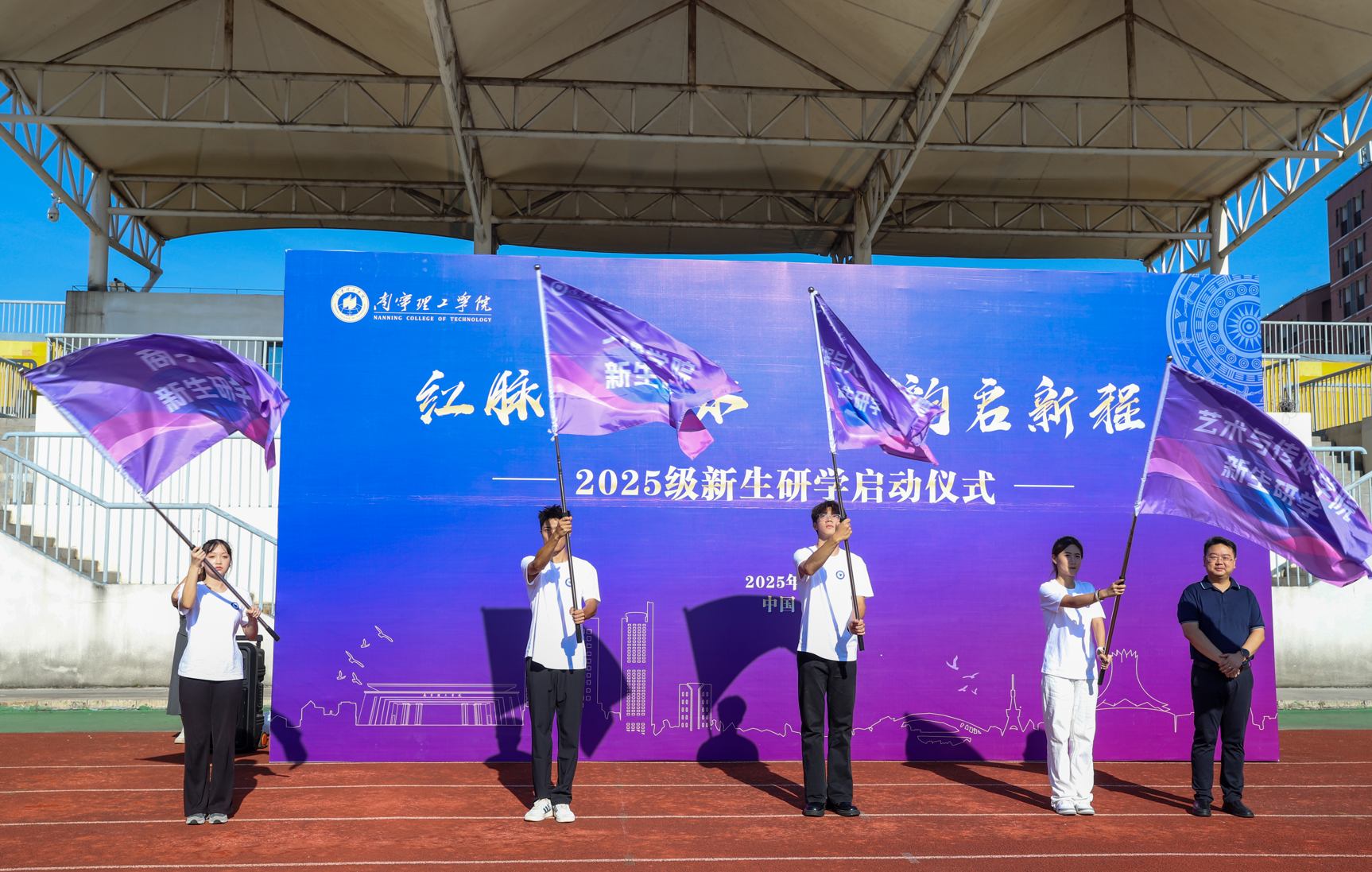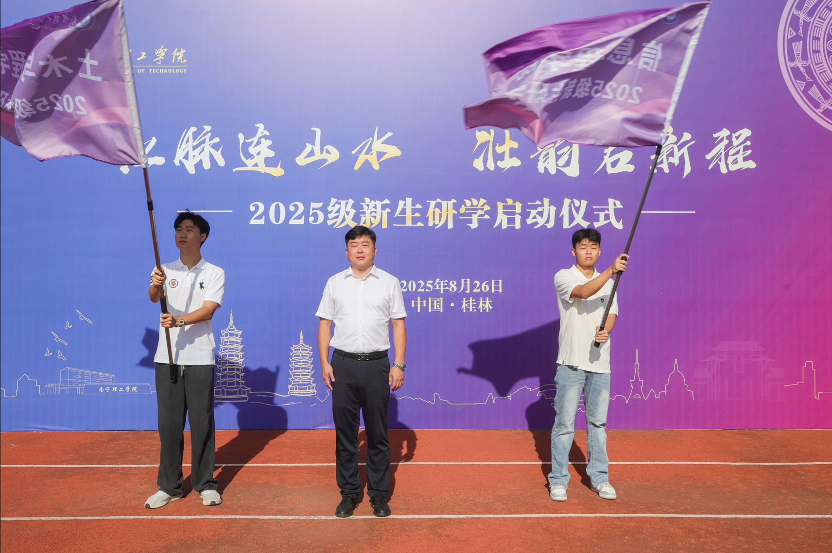 副董事长冯正垚,党委副书记、副校长韩乔分别为南宁东盟校区及桂林雁山校区各学院新生代表授旗。当象征着研学精神与青春使命的旗帜稳稳交到新生代表手中时,不仅传递着学校对学子们深入实践、探寻真知的殷切嘱托,更凝聚着传承红色基因、弘扬壮乡文化、践行科技自强的责任担当。
