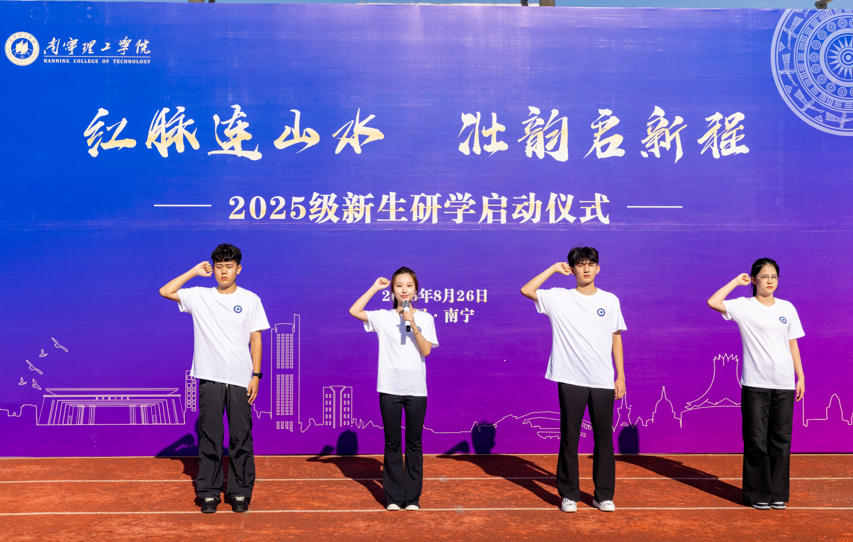 2025年8月26日上午,BV伟德官方网站“红脉连山水,壮韵启新程”2025级新生研学启动仪式在桂林雁山校区和南宁东盟校区运动场同步举行。学校领导冯正垚、杨鲜丽、韩乔、郑方兵、马纪涛,各学院党总支书记、辅导员与2025级新生代表齐聚现场,共赴这场兼具仪式感与教育意义的研学开篇。