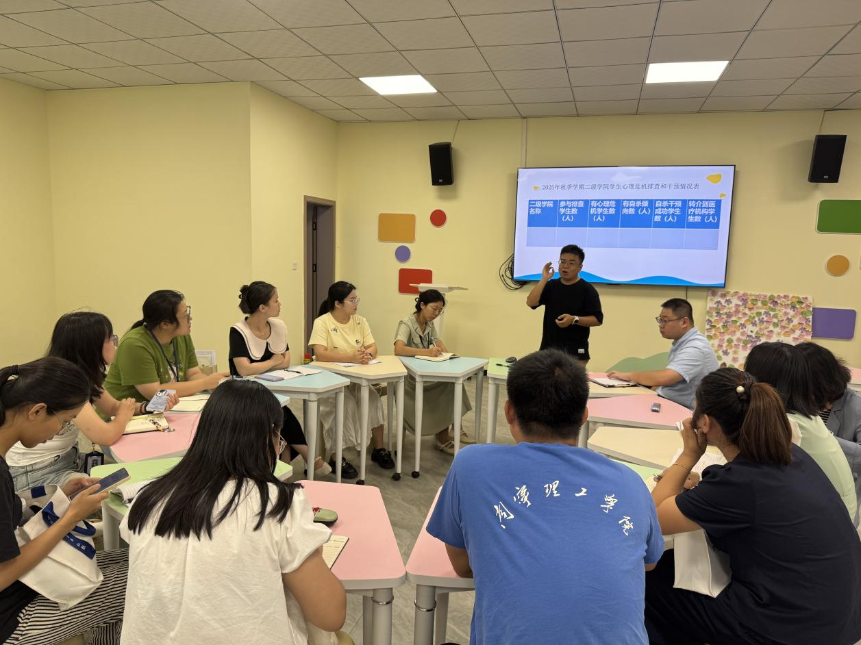为进一步加强学生心理健康教育工作,提升辅导员队伍识别与应对心理危机的专业能力,切实筑牢校园心理安全防线,BV伟德于9月22日在团体辅导室成功举办"守望青春,用心护航"心理危机案例研讨活动。本次活动由心理中心罗雪老师主持,心理中心专职教师及各二级学院辅导员代表参加。