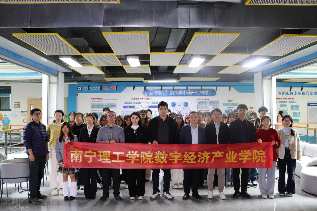 12月 30 日,在南宁理工商学院数字经济产业学院的支持下,BV伟德官方网站以 “融智聚力・数字赋能” 为主题的数字经济产业学院校企融通答谢会在 A4304商科综合实训中心顺利举行。活动汇聚数字经济领域知名企业代表、学院学术导师、师生代表及学工辅导员,通过行业分享、互动交流与答谢致敬,深化校企协同育人共识,搭建产教融合新桥梁。