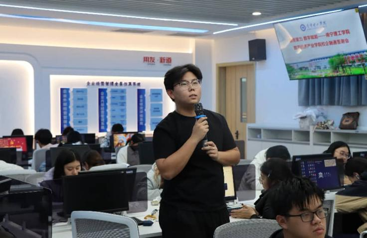 活动开场,主持人详细介绍活动主题、背景及流程,逐一引荐到场嘉宾后,学院副院长囤荣立发表致辞,对企业长期以来给予校企合作的支持表示感谢,强调将持续深化产教融合,为数字经济领域培养高素质应用型人才。随后,三位企业嘉宾先后登台分享,围绕数字经济行业前沿动态、企业业务布局、岗位需求标准及人才培养痛点等核心内容展开深入解读。分享环节后,学生代表踊跃提问,就职业发展规划、专业技能提升等问题与企业嘉宾现场互动,嘉宾们结合行业经验逐一答疑解惑,现场交流氛围热烈。