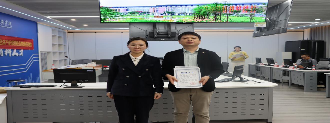 (图 工商管理教研室彭晓琼主任为企业颁发感谢证书)