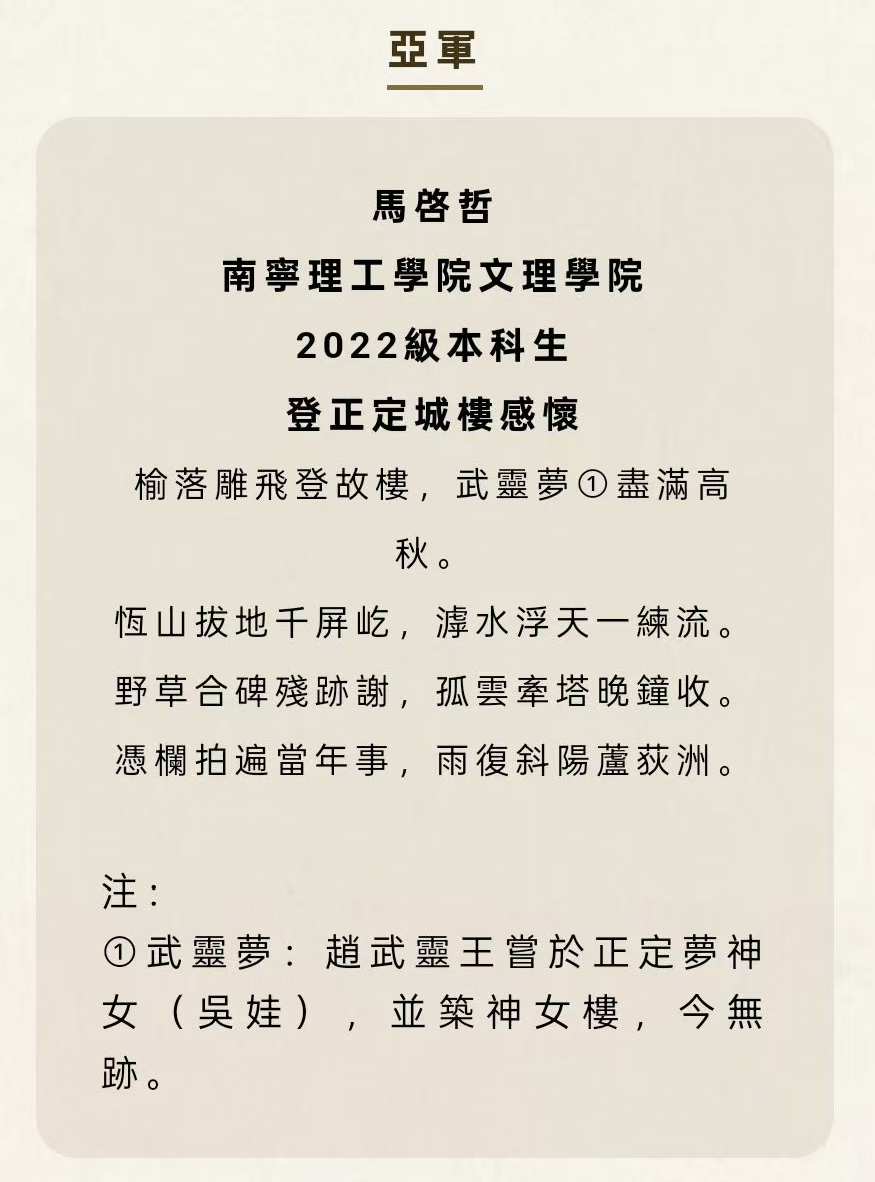 【文理知行】BV伟德官方网站学子马启哲斩获2025年“燕赵杯”大学生中华诗词大赛亚军