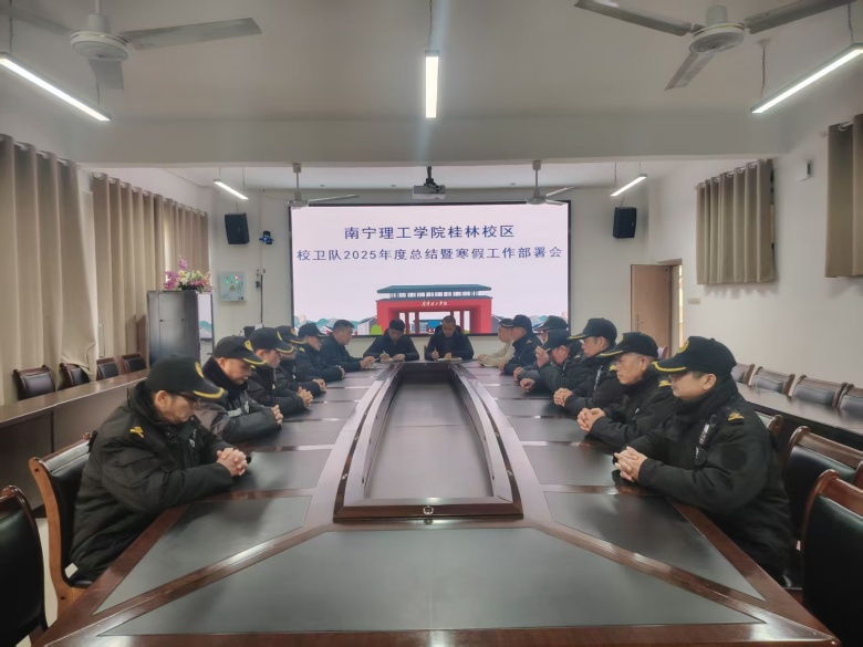 为全面梳理总结2025年工作完成情况,部署2026年工作任务,1月5日上午,后勤保卫处召开两校区2025年工作总结暨2026年工作部署会,后勤保卫处处长钟木生、副处长温怡、副处长王胜,全体行政干部、班组长及外包单位驻场经理参加会议。会议由后勤保卫处处长钟木生主持。