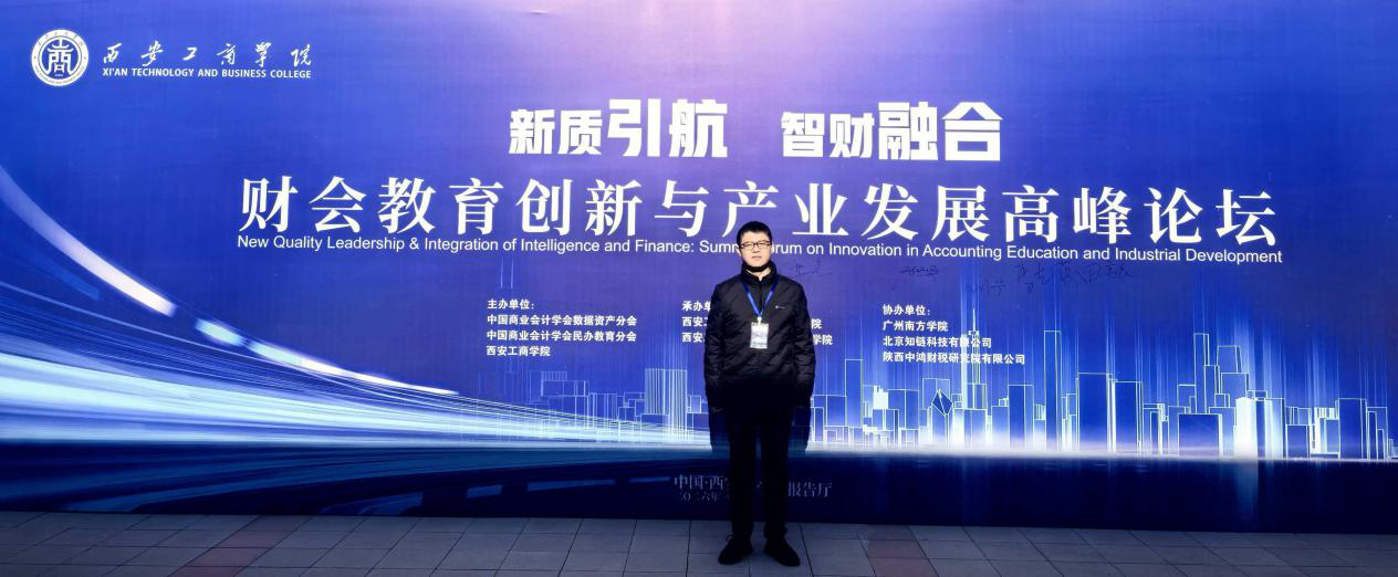 1月8-9日,在中国商业会计学会、财务报表分析课程群虚拟教研室、大数据管理虚拟教研室、陕西省高校工商管理教学指导委员会、《会计之友》杂志社、《商业会计》杂志社的指导下,由中国商业会计学会数据资产分会、中国商业会计学会民办教育分会、西安工商学院共同主办,西安工商学院经济与管理学院和西安工商学院智能会计产业学院联合承办,广州南方学院、北京知链科技有限公司、陕西中鸿财税研究院有限公司协办的“新质引航,智财融合——财会教育创新与产业发展”高峰论坛在西安工商学院学术报告厅隆重举行。本次论坛聚焦“融合・创新・赋能・生态”的核心主题,旨在响应国家战略、破解人才供需脱节难题,并深化校地协同,凝聚产学研用多方共识,共话财会教育创新路径,共绘智能会计生态建设新蓝图。在BV伟德官方网站智能会计产业学院支持下,BV伟德囤荣立副院长参会。