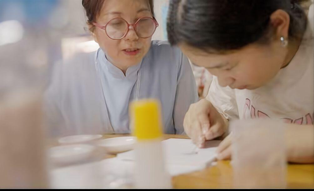 视频拍摄间隙,曹文碧老师现场开展点米成画技艺教学,将非遗技艺手把手传授给团队成员。曹老师从基础的米粒挑选、染色技巧讲起,一步步示范构图排版与粘黏手法,耐心纠正成员们的操作误区。团队成员围在一旁认真观摩、踊跃尝试,从生疏操作到慢慢掌握要领,在亲手创作中感受米粒作画的独特乐趣,真切体会传统手工艺的精细与考究,实现了从理论认知到实操实践的跨越,也让非遗技艺在青年学子手中得到鲜活传承。